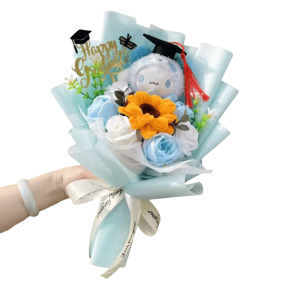 Cartoon Cinnamoroll Plush Flower Bouquet With Graduation Hat: The Cartoon Cinnamoroll Plush Flower Bouquet with Graduation Hat is an adorable and thoughtful way to celebrate academic success. Crafted from soft plush and measuring 35cm, this bouquet features multiple Cinnamoroll plushies wearing graduation hats, arranged like a floral masterpiece. It’s the perfect gift for graduates of all ages—combining celebration, cuteness, and charm. Whether for a friend, sibling, or classmate, this plush bouquet will leave a lasting impression and serve as a cherished keepsake.