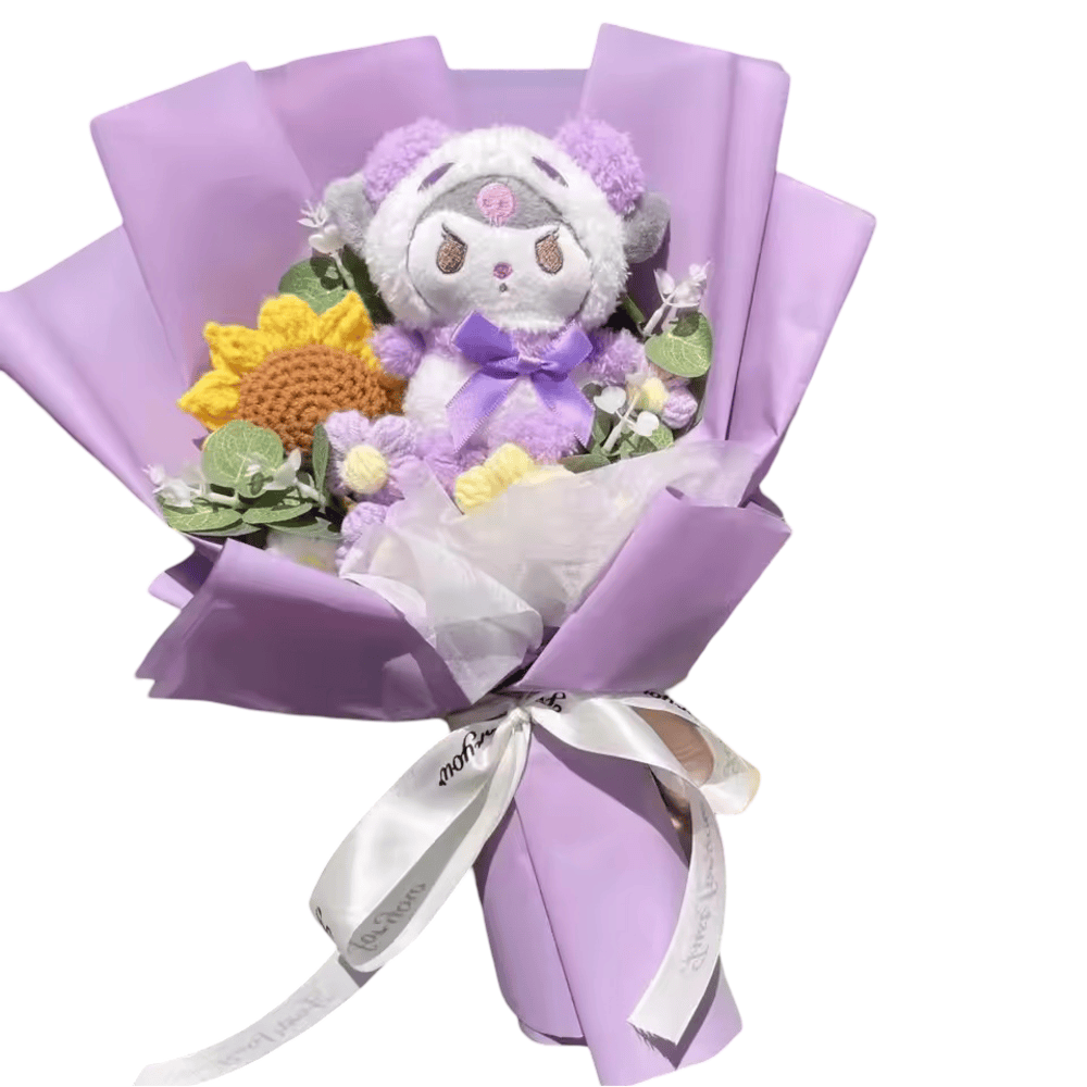 Cartoon Kuromi Plush Toy Flower Bouquet: Bring a gothic twist to sweetness with the Cartoon Kuromi Plush Toy Flower Bouquet. This 35cm bouquet showcases Kuromi, the mischievously cute Sanrio character, nestled among plush flowers. Made from soft plush material, it’s perfect for gifting or decorating bedrooms, desks, or display shelves. Whether for a Kuromi fan or to express a quirky style, this plush bouquet adds charm and character to any space with its playful and lovable design.