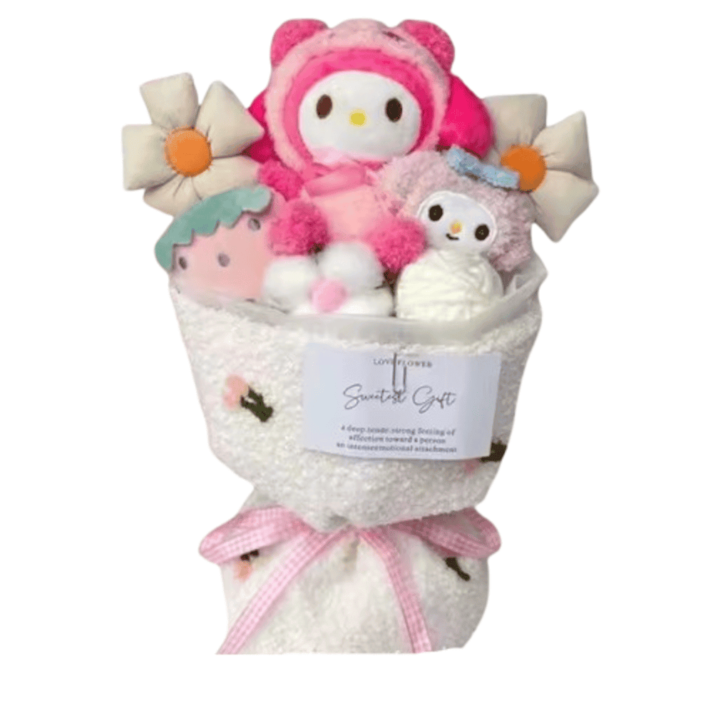 Cartoon Sanrio My Melody Plush Bouquet: This adorable Cartoon Sanrio My Melody Plush Bouquet is a perfect gift for fans of the iconic character. Crafted with soft plush material and filled with premium PP cotton, it ensures a fluffy and cozy feel. Measuring 30*20cm, it’s the ideal size for hugging or displaying. Perfect for birthdays, anniversaries, or simply cheering someone up, this bouquet brings warmth and smiles. Its charming design makes it a delightful addition to any Sanrio or My Melody collection.