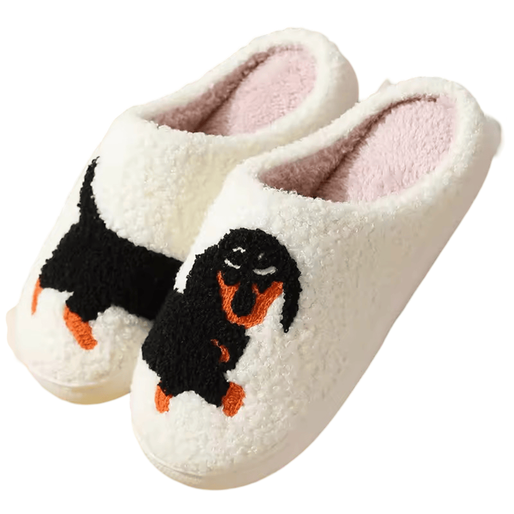 Dachshund Dog Warm Plush Slippers: Keep your feet warm and cozy with these Dachshund Dog Plush Slippers! Designed with an adorable dachshund shape, these slippers provide ultimate comfort with their soft plush material and cushioned sole. Perfect for dog lovers, they make lounging at home extra fun and stylish. Whether for yourself or as a thoughtful gift, these slippers bring warmth and charm to any indoor setting!