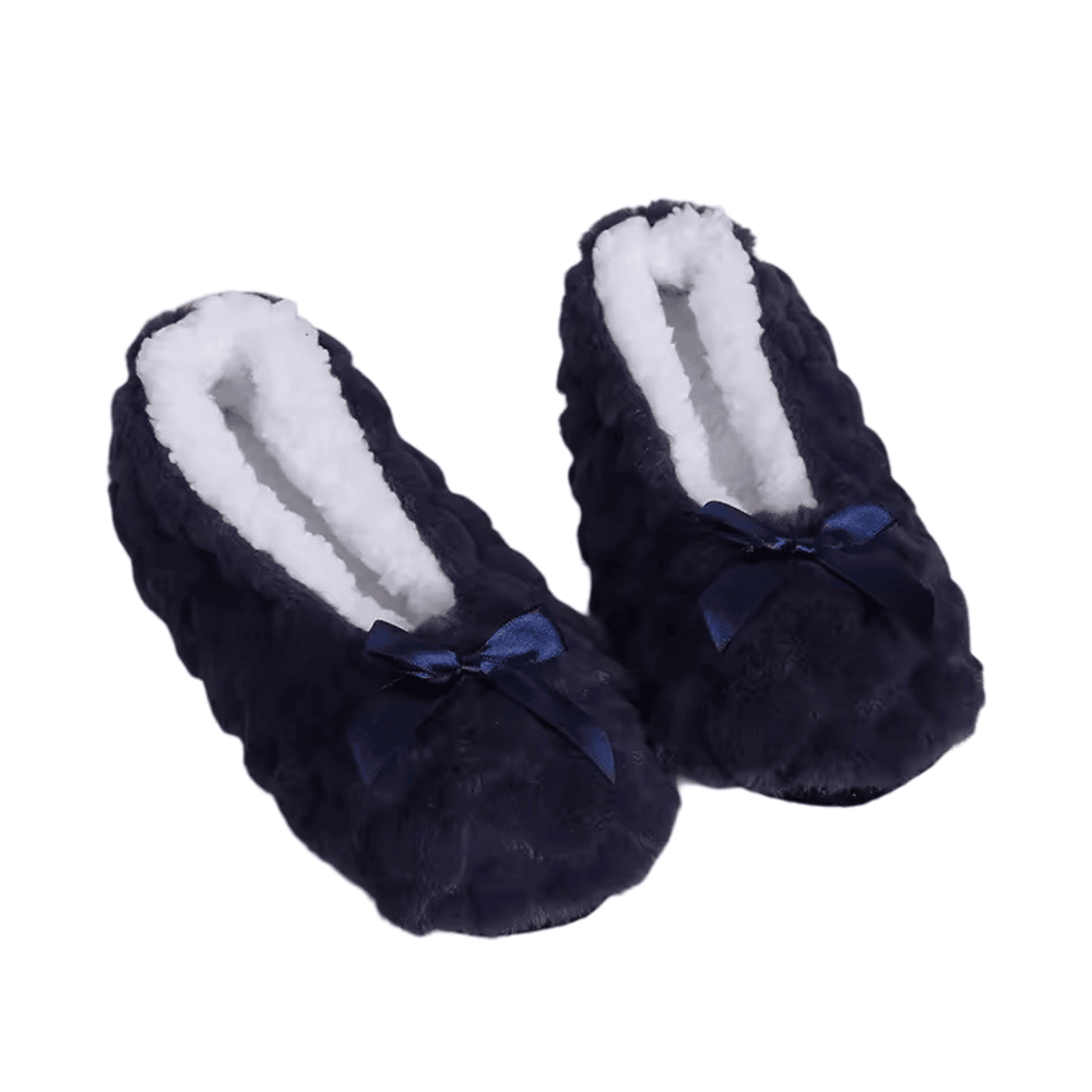 Navy Blue Ribbon Bow Winter Warm Slipper: Step into cozy luxury with these Navy Blue Ribbon Bow Winter Warm Slippers. Crafted from soft faux fur, they wrap your feet in warmth and elegance. The charming ribbon bow adds a stylish touch, perfect for lounging in winter. Designed with non-slip soles for indoor safety and all-day comfort. A must-have for chilly days and stylish comfort at home.