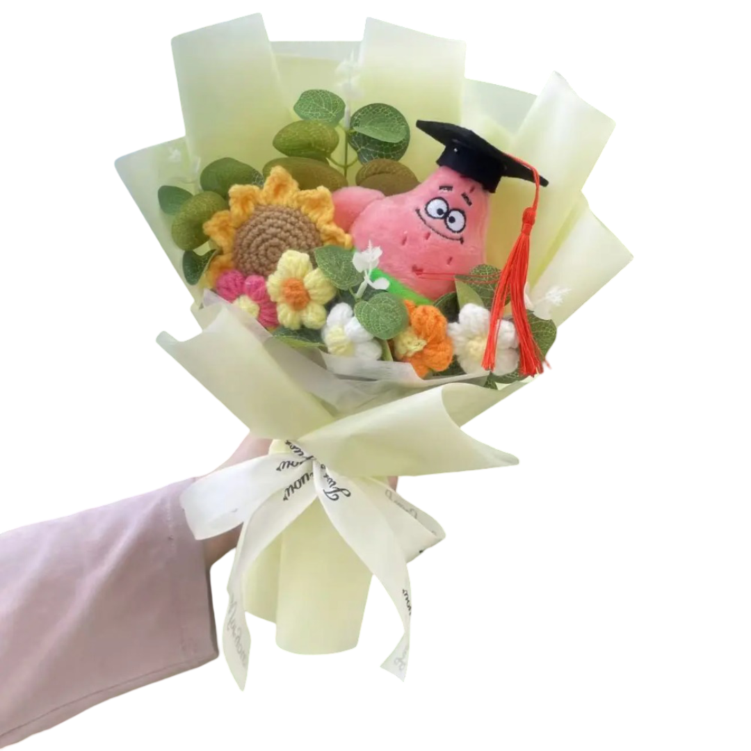Patrick Star Graduation Plush Bouquet: Celebrate special moments with the Patrick Star Graduation Plush Bouquet, a delightful gift symbolizing success and joy. Crafted from high-quality Material: Plush, this soft and huggable bouquet showcases Patrick in his graduation attire, making it a charming keepsake for graduates. Perfectly sized at Size: 32cm, it combines fun and sentiment, ideal for graduation ceremonies, gifts, or decorations to express your heartfelt congratulations.