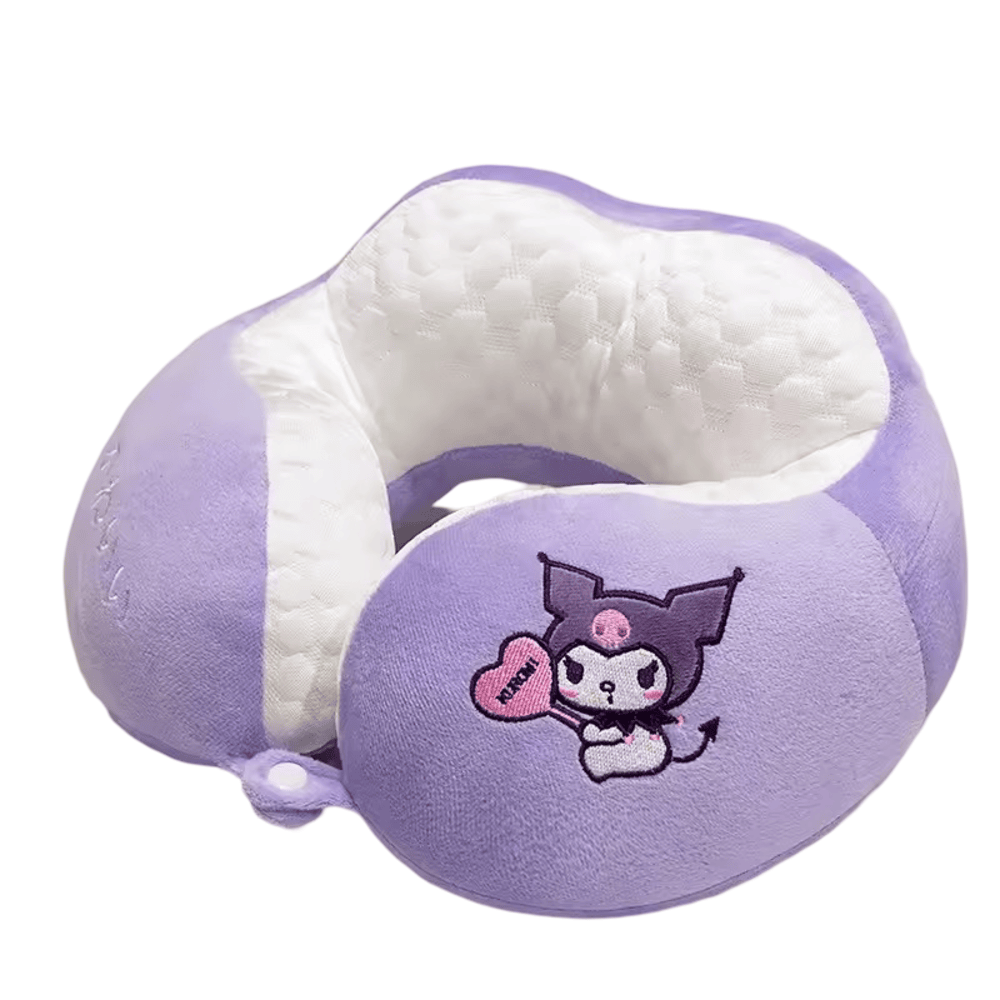 Sanrio Cartoon Kuromi U-Shaped Plush Neck Pillow: Add a touch of mischief and comfort to your travels with this Sanrio Kuromi U-Shaped Plush Neck Pillow! Designed for both style and support, this plush pillow features Kuromi’s signature playful expression, making it a perfect travel companion. Crafted from ultra-soft plush fabric, it provides gentle cushioning for your neck and shoulders, ensuring relaxation on long trips, office breaks, or cozy moments at home. Lightweight and portable, this kawaii neck pillow is a must-have for Kuromi fans!