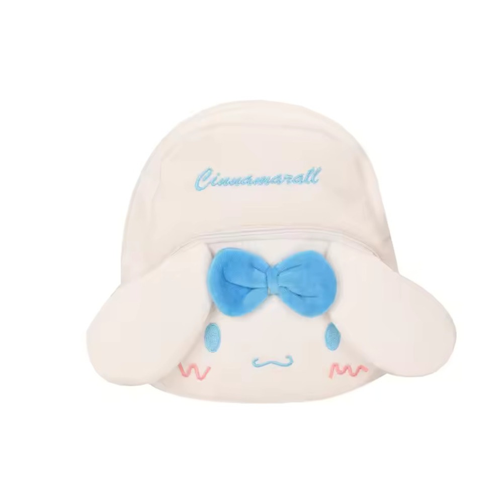 Sanrio Cinnamoroll Plush Backpack: Carry a cute companion with you everywhere with the Sanrio Cinnamoroll Plush Backpack! Made from soft plush material, this backpack features Cinnamoroll’s adorable design with his big ears and sweet face. Measuring 26X22X11cm, it’s the perfect size for your essentials. Whether for school, outings, or a fun accessory, this backpack is a must-have for Cinnamoroll fans!