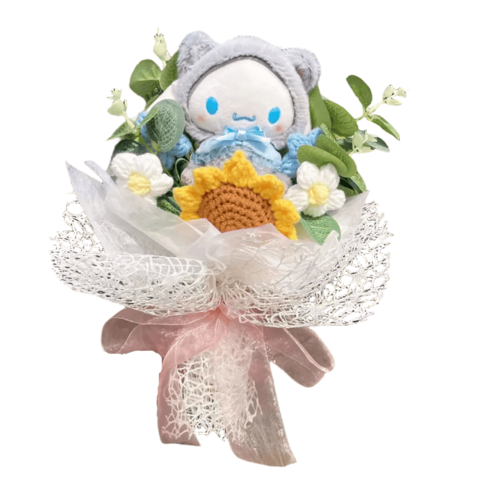 Sanrio Plush Cinnamoroll Toy Bouquet: Add a touch of sweetness to any occasion with the Sanrio Plush Cinnamoroll Toy Bouquet. This adorable bouquet features Cinnamoroll, the beloved Sanrio character, surrounded by plush flowers, making it the perfect gift or decorative piece. With its soft plush material and charming design, it brings warmth and joy to any room. The bouquet measures 30cm and is made from high-quality plush material.
